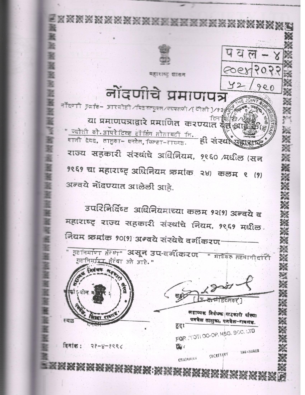 ज्योती को. ऑपरेटिव्ह हाऊसिंग सोसायटी लिमिटेड आरजीडी / पीडबल्यूएल/ एचएसजी / (टी.सी.) १३४२ अधिक माहिती Evolution Registration Certificate Registration Certificate Member list Meeting proceeding 25-06-2023 15-08-2023 10-12-2023 17-04-2024 25-06-2023 15-08-2023 10-12-2023 17-04-2024 Project report Project Report Project Report Comparison sheet